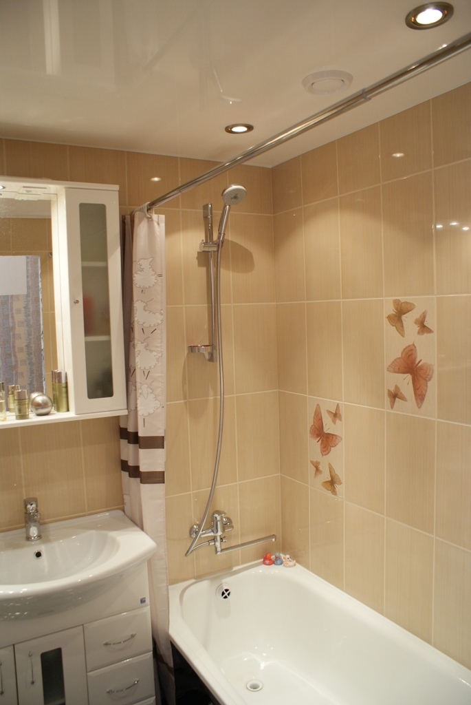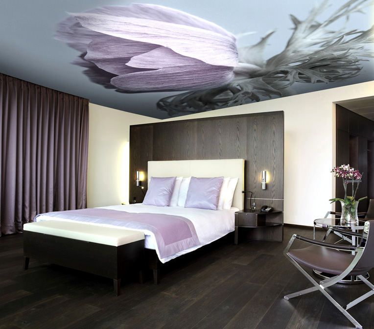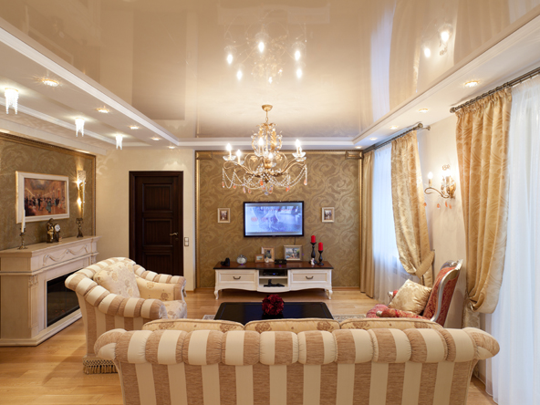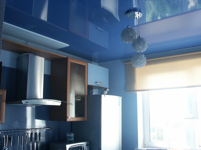 Dacă nu ați putut găsi o culoare de tavan care să se potrivească perfect cu culoarea tapetului, atunci este mai bine să optați pentru varianta cu tavan alb. Tavanele lucioase ridică vizual plafonul, așa că ele sunt mai potrivite pentru încăperi mici. Spre deosebire de tavanul mat, există o mare varietate de culori pentru tavanul lucios. La dorință, puteți combina plafon colorat cu unul alb și tavanul mat cu unul lucios.